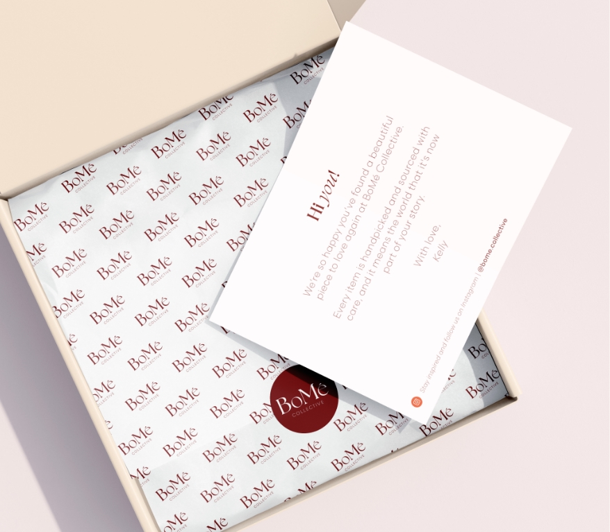 Van warme bordeauxtinten tot beelden die ruiken naar vintage leer en verse espresso: alles klopt. Elk shot, elk lettertype, elke caption sluit perfect aan bij de identiteit van het merk. Stijlvol, vrouwelijk en een tikkie brutaal. Met oog voor detail en gevoel voor merk bouwen we zo aan een wereld waarin BoMé haar verhaal kan vertellen, stap voor stap.