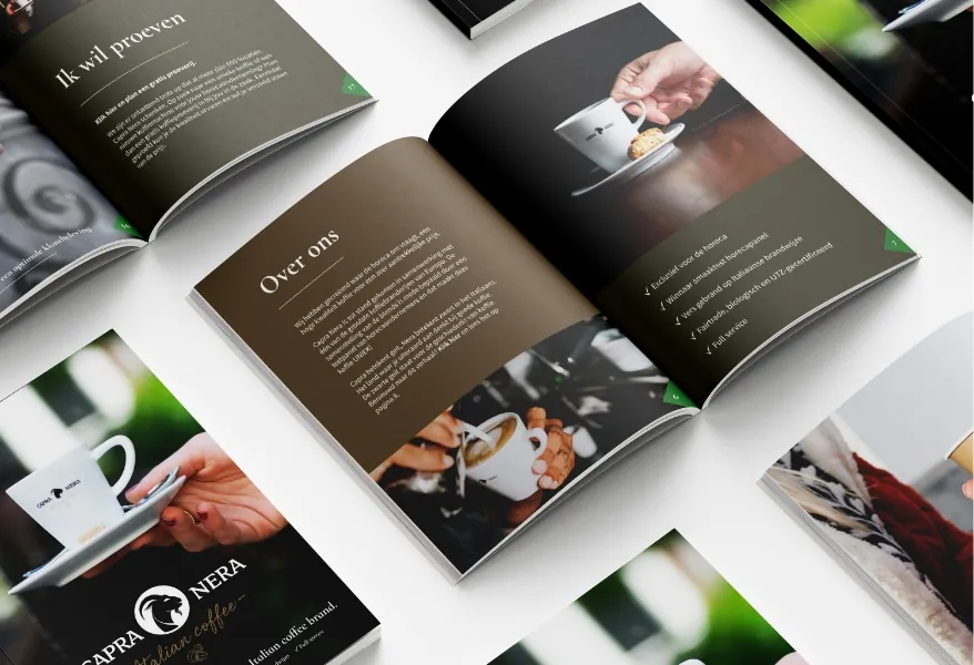 Zonder koffie komen de meeste van ons de dag niet door. Hoe lekker is het als je dan een top-koffiemerk tot je klanten mag rekenen? Capra Nera maakt koffie die vers gebrand is op Italiaanse wijze, speciaal voor horeca-ondernemingen én voor ons kantoor. Bij zo’n stijlvol product hoort een net zo stijlvol branding- en marketingplan. Zo weten we het ambachtelijke en eerlijke karakter van het merk perfect te communiceren.
