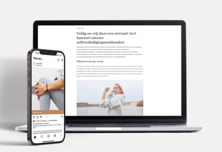 Na een aantal jaren producttesten was het in 2023 voor Nederlandse start-up Invi tijd om de markt te veroveren met een nieuwe collectie zelfverdediging armbanden. We hielpen dit innovatieve merk met de voorbereiding van de lancering, een volledige re-branding en herpositionering inclusief de uitwerking van een performance-based (digital) marketingstrategie.