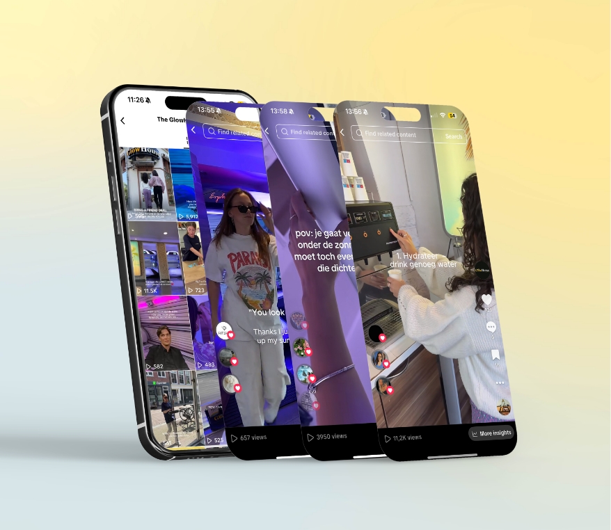 Naast onze maandelijkse samenwerking voor The GlowHouse creëren we ook regelmatig een reeks social video’s die de energie en beleving van het merk vangen. Met trendonderzoek en een doordacht videoplan zorgen we dat iedere video relevant is en precies past bij het platform. Van script tot shoot en edit: alles doen we in-house, zodat de content authentiek en consistent blijft.